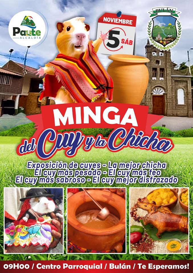 Con mucho entusiasmo, los agroproductores de la parroquia de Bulán en Paute se preparan para el gran festival del Cuy y la Chicha que se realizará este sábado 5 de noviembre desde las 9h00 en la plazoleta central.