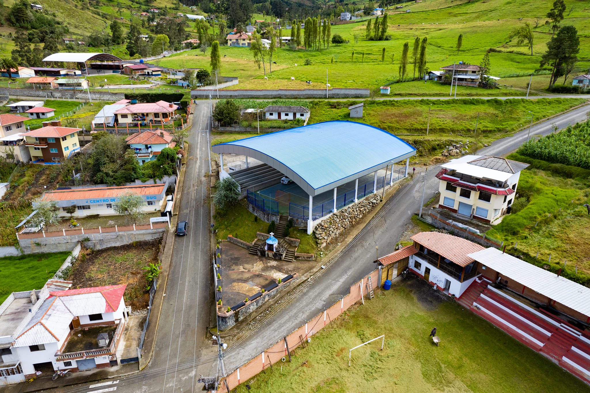 Está magnífica construcción a más de embellecer el área urbana de la parroquia, es un espacio de encuentro común ideal para la práctica de actividades recreativas, el desarrollo de eventos sociales y culturales en donde la población estará protegida del sol y la lluvia.