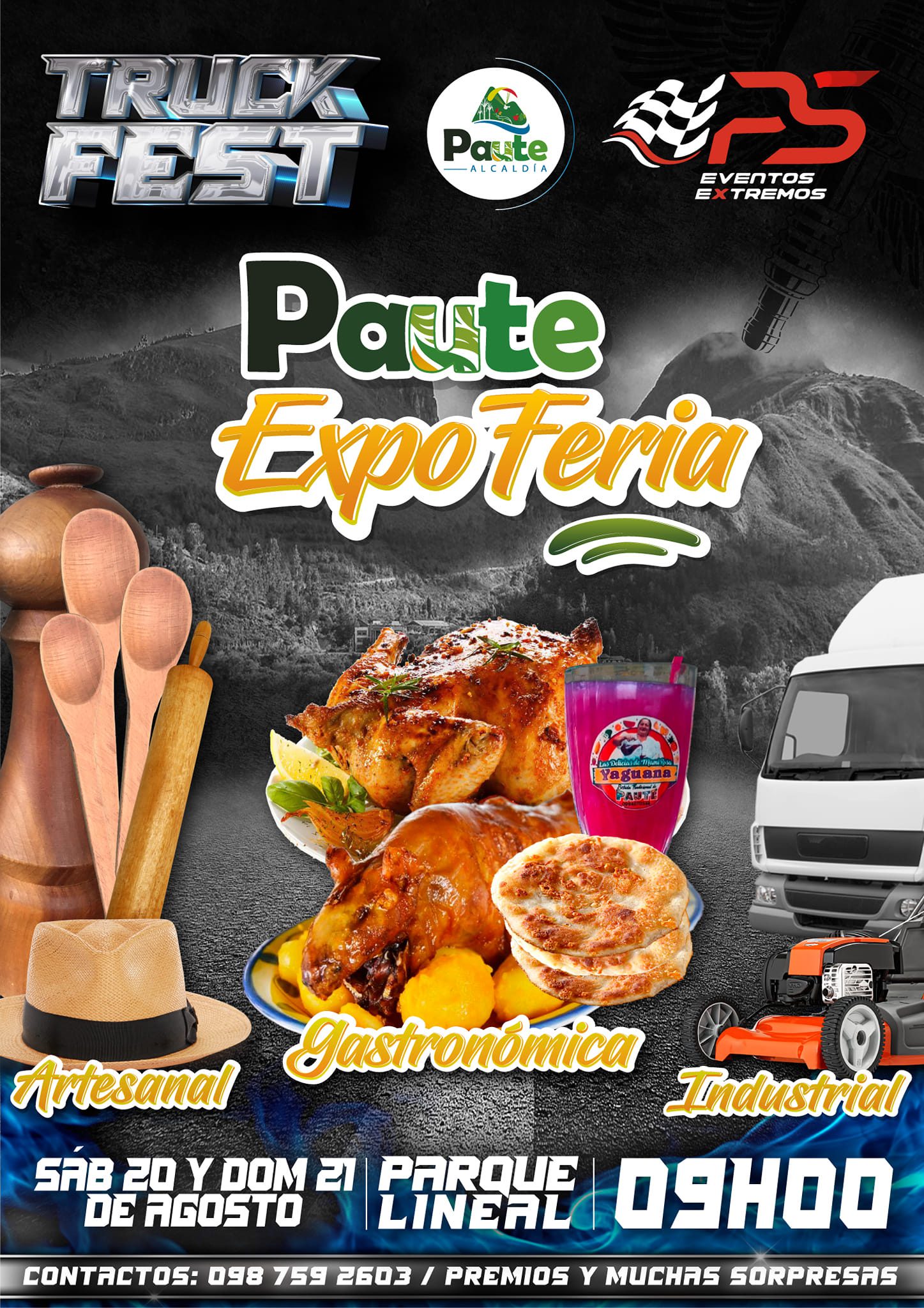 Y el domingo 21 de agosto partir de las 10H00, te invitamos a vivir la emoción de la competencia de cabezales PAUTE TRUCK FEST 2022 en el cual podrás disfrutar de las habilidades y destrezas de los pilotos participantes y un 1/4 de milla con más de 25 cabezales entre americanos y europeos, que realizarán su espectaculo a orillas del Río Paute.