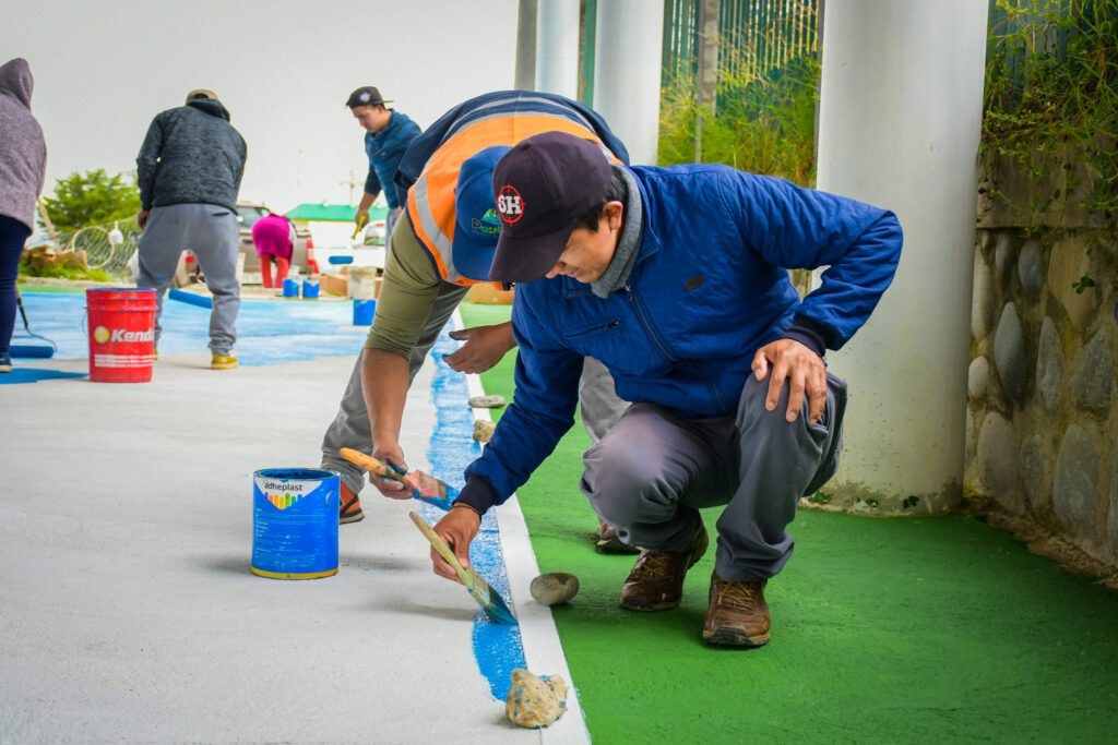 Cabe destacar que, desde la Alcaldía de Paute se facilitó la mano de obra calificada y 35 galones de pintura especial para canchas, mientras que la comunidad apoyó con la mano de obra no calificada. Estos trabajos son complementarios a la entrega de la cubierta y el recapeo efectuado en el espacio deportivo meses atrás.