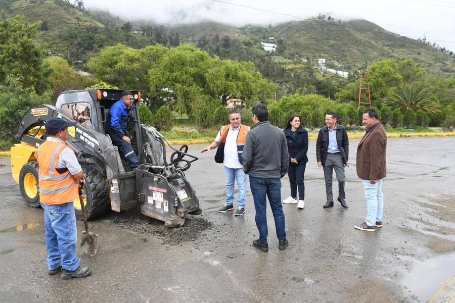 El Alcalde de Paute, Raúl Delgado y la Vicealcaldesa del Cantón, Elisa Chuquiralao, verificaron el inicio de los trabajos de bacheo en la avenida Luis Enrique Vásquez, sector del Centro de Revisión Técnico Vehicular, importante arteria vial que también conecta con el Terminal Terrestre de la ciudad.