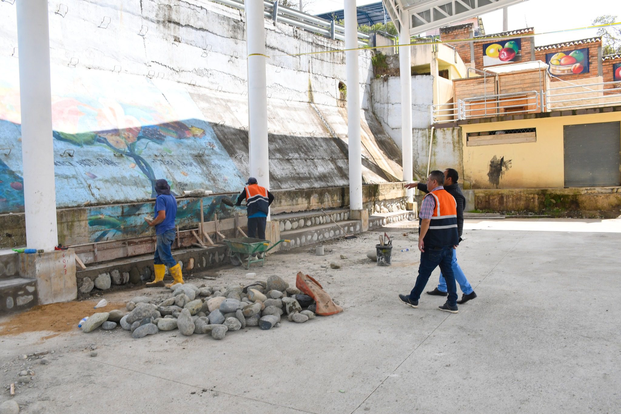 El Alcalde Raúl Delgado, la Vicealcaldesa Elisa Chuquiralao, el Concejal David Idrovo, junto al presidente Johnny Orellana, verificaron el avance de los trabajamos de construcción del graderío en la moderna cubierta de centro parroquial de Bulán. Asimismo, se planificó y coordinó la instalación de un sistema de iluminación, la colocación de material promocional y la construcción de pasamanos.