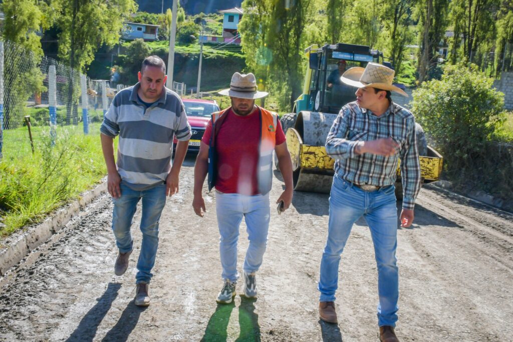 El alcalde encargado David Idrovo, el presidente Germán Ávila y los técnicos del GAD Municipal de Paute, constataron los trabajos de reconformación vial a nivel de base que se ejecuta en la parroquia Dug Dug en el tramo la denominado la Y hasta la escuela José de la Vega.