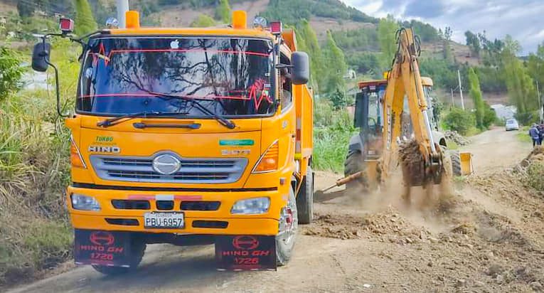 En un trabajo mancomunado entre la Alcaldía de Paute, el Gobierno Parroquial de Chicán y los moradores, se realiza el mantenimiento vial de las calles del barrio El Paraíso.