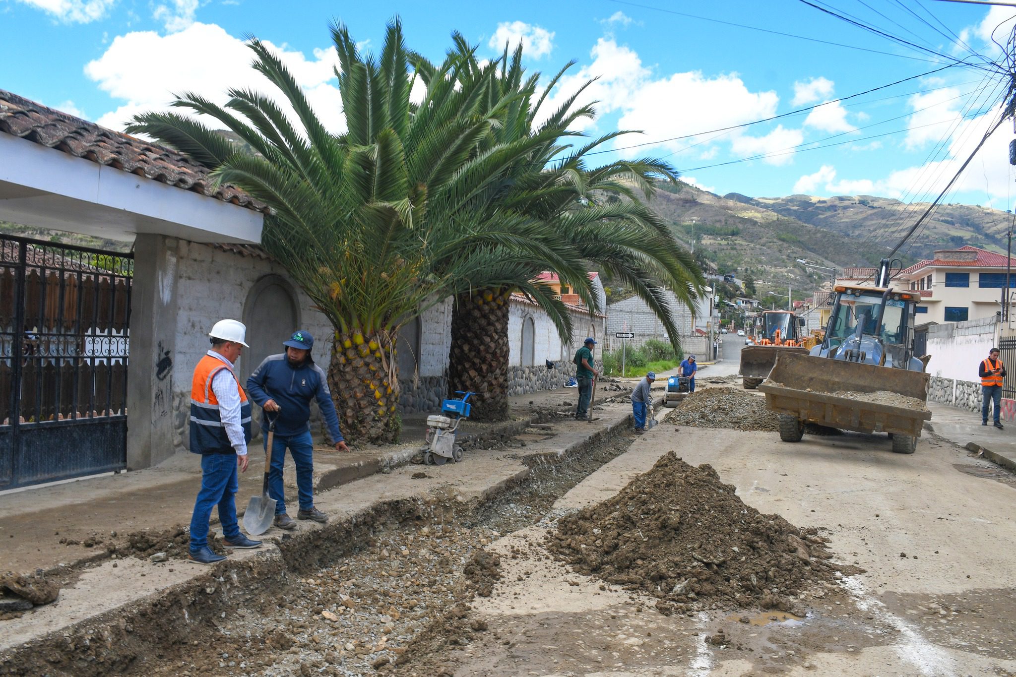 Hoy, junto al Alcalde Raúl Delgado, la Vicealcaldesa Elisa Chuquiralao, el concejal David Idrovo y nuestro equipo técnico de la Municipalidad de Paute, hemos verificado los trabajos de cambio de la matriz de alcantarillado en la calle Antonio Tapia, en el barrio Los Sauces.