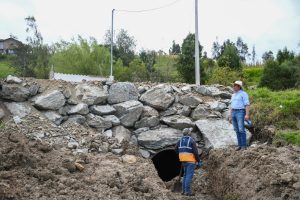 Tras las fuertes lluvias de semanas anteriores, un tramo de la vía principal en la parroquia San Cristóbal colapsó, provocando la interrupción del paso y poniendo en riesgo la conectividad local. Además del daño vial, fue necesario intervenir en el paso de agua, fundamental para evitar futuras afectaciones en la zona.