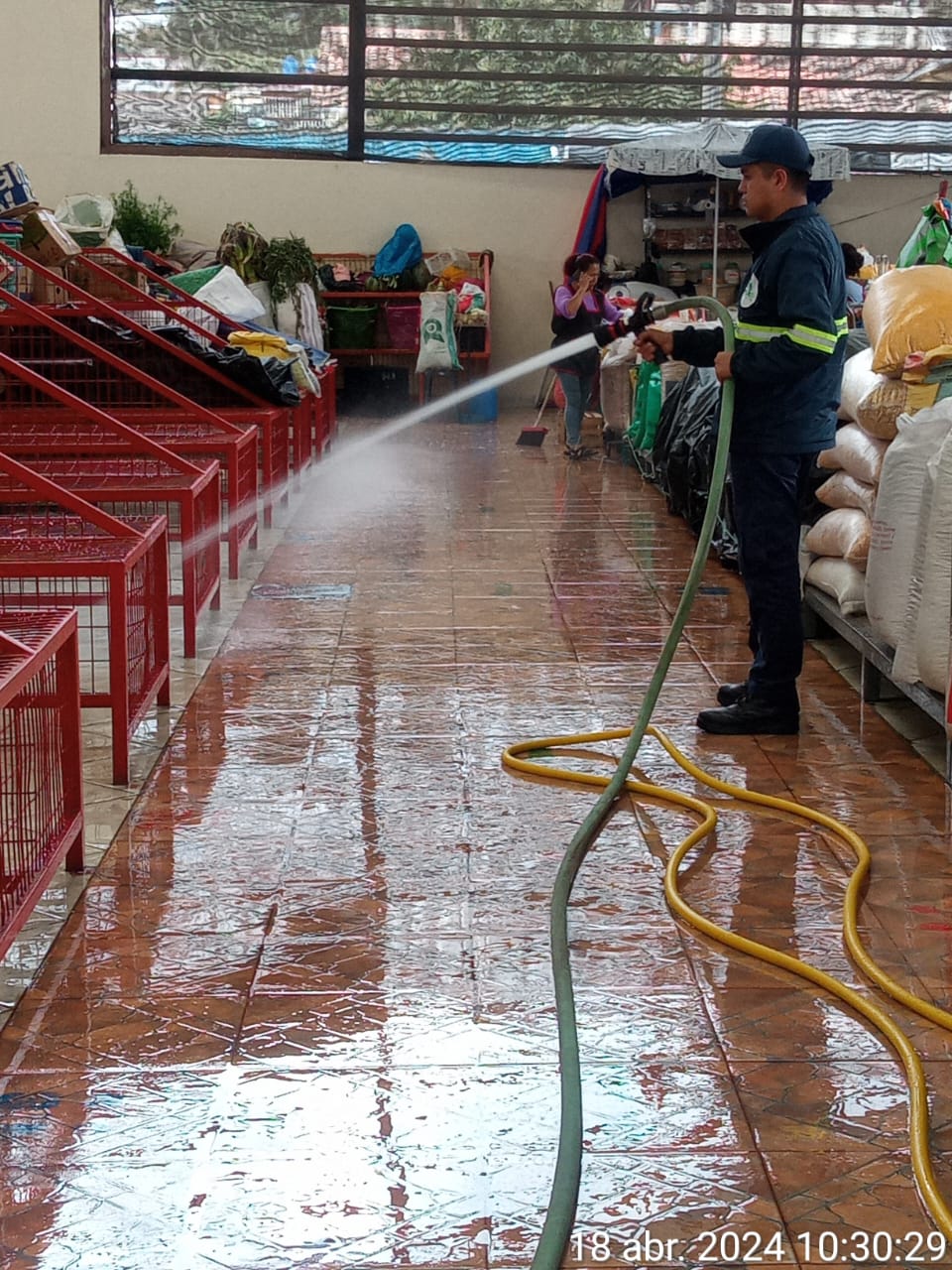 El jueves 18 de abril, nuestro equipo de agentes municipales de la Dirección de Servicios Públicos Municipales trabajaron arduamente junto a los comerciantes del Mercado 26 de Febrero en una minga para mejorar aún más nuestro centro de abastos.