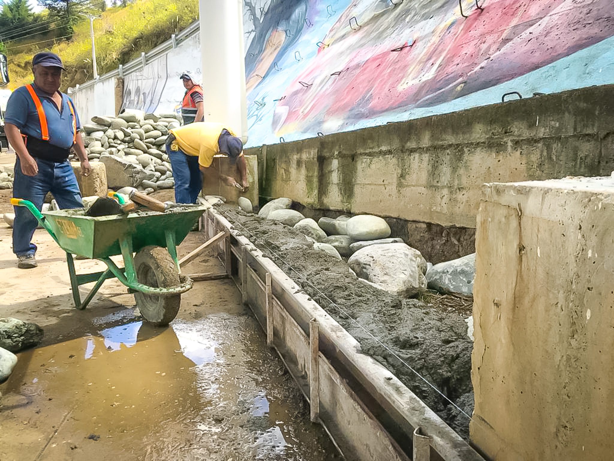 Estos trabajos complementarios se ejecutan con el objetivo de mejorar las áreas de este espacio deportivo. Por otra parte, el GAD Municipal entregó canecas de pintura, para en los próximos días efectuar una minga para el pintado de la cancha de esta importante parroquia.