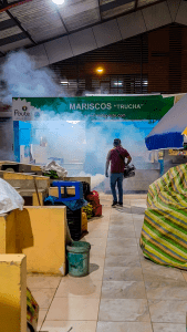 🌫👨‍🏭 Es por eso que se realizó el servicio de control de plagas y desinfección de los espacios públicos municipales y de afluencia de público, como son los mercados 26 de Febrero, Mercado San José, Cementerio Municipal, Feria de Ganado, Centro de Faenamiento y Albergue Municipal.