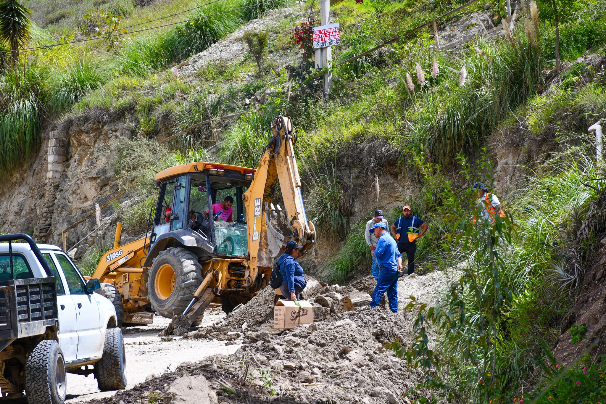 En la comunidad de Virgenpamba, el equipo técnico de la Municipalidad de Paute continúa trabajando para mejorar la infraestructura vial. ![]()