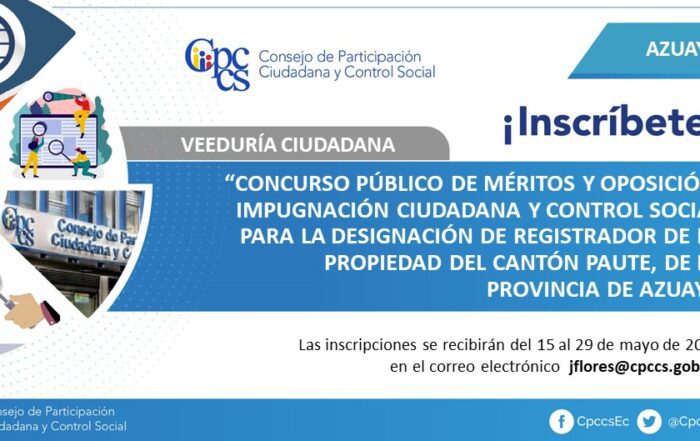 Convocatoria a Veeduría para vigilar designación de Registrador de la Propiedad en Paute