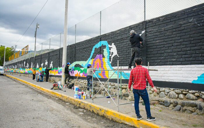 MUNICIPIO DE PAUTE PINTA COLORIDO MURAL EN LAS PAREDES DEL ESTADIO