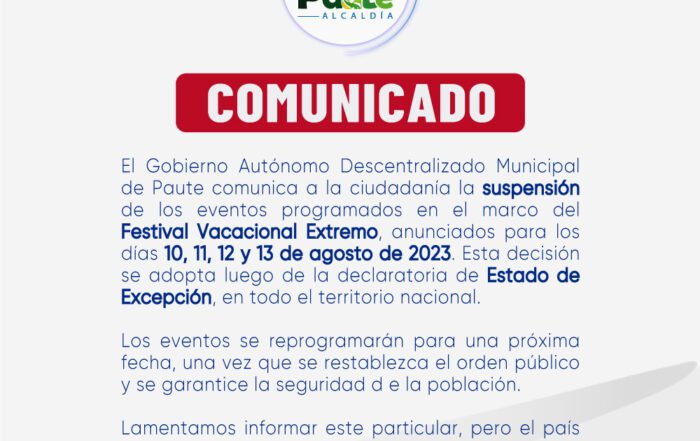 POR ESTADO DE EXCEPCIÓN PAUTE SUSPENDE FESTIVAL VACACIONAL EXTREMO